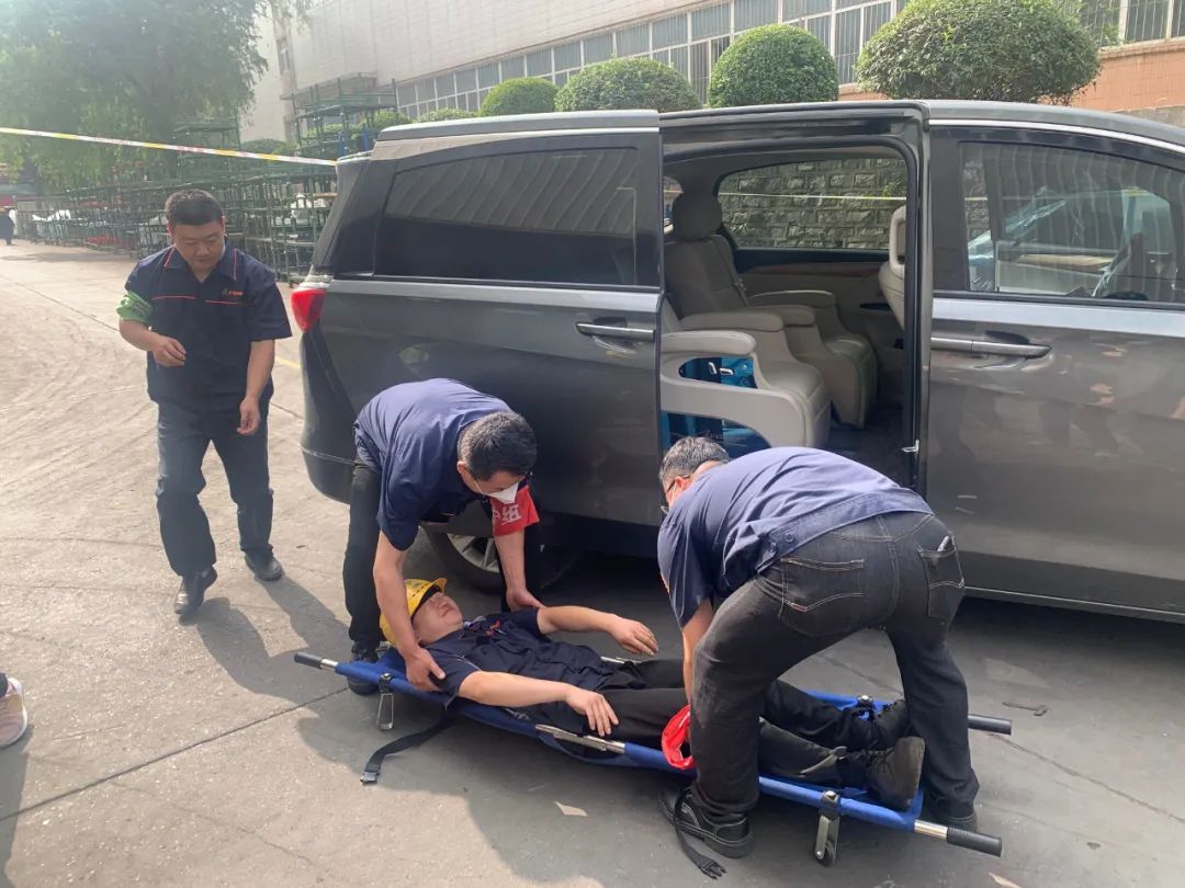 “練習訓練起頭!”跟著變亂應搶救濟批示帶領小組的一聲令下,本次練習訓練正式起頭。在火源四周,一位職工昏倒在地,搶救救濟組攜滅兵器奔向火源,當即展開撲救任務;醫療救護組利用擔架將受傷職員轉移至寧靜地點,對傷者停止告急搶救;現場保衛組職員利用鑒戒線斷絕火警地區,避免變亂擴展和次生災難產生;后勤保證組職員構造車輛,將受傷職員輸送至病院治療;其余職工順遂撤退到寧靜地帶后,當即盤點上報人數。